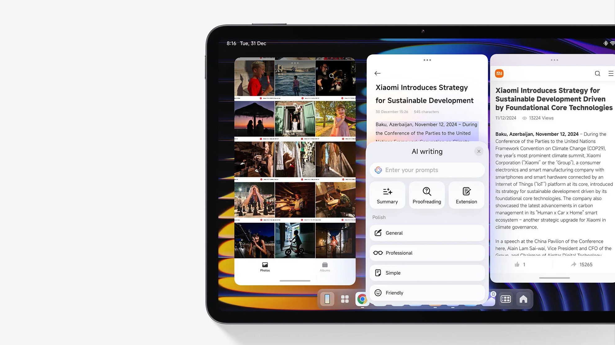 Серия Xiaomi Pad 7 Pro обладает новыми возможностями искусственного интеллекта, позволяющими легко справляться с различными рабочими задачами, такими как поиск, создание текстов и изображений, а также проведение совещаний.