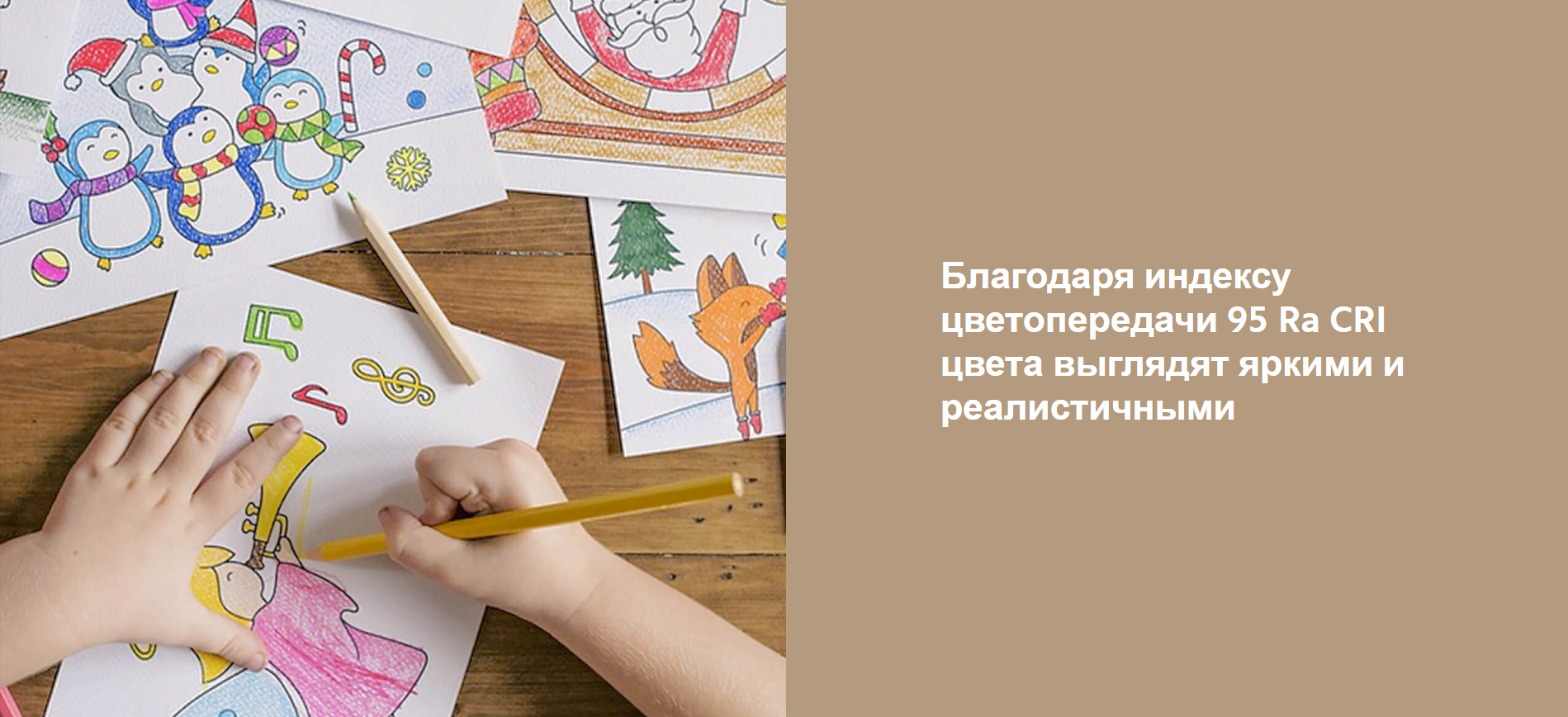 Благодаря индексу цветопередачи 95 Ra CRI цвета выглядят яркими и реалистичными